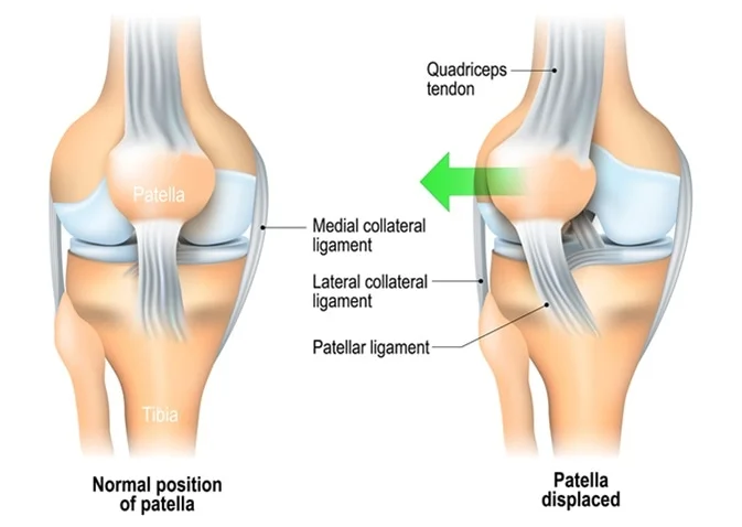 In a healthy knee, your patella is located within a trench at the base of the thigh bone(femur). Therefore, Relocation of kneecap from its usual arrangement will cause Patellar dislocation.