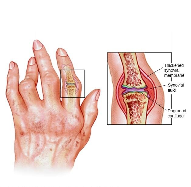 Rheumatoid arthritis happens while your immune system strikes on synovial or lining of joints. As a result, infection swells the synovial, which can ultimately damage the bone and cartilage inside the joint.